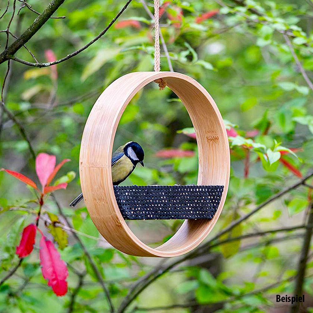 Vogelfutterhaus aus Bambus zum Aufhängen - geeignet u.a. für unsere Premium Wildvogelfuttermischungen Senkrechtstarter und Expertenmischung